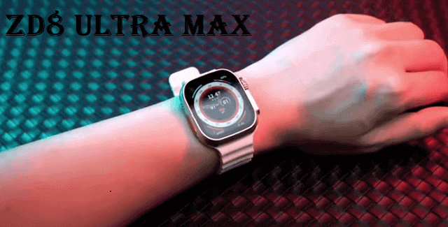 The ZD8 Ultra Max smartwatch body is made of titanium alloy while the strap is available in silicone. Regarding the display screen! This ZD8Ultra Max smart watch has a 2.08-inch Large IPS touch screen covered with 2.5D glass and is created with a resolution of 420*485 pixels. This Apple Watch Ultra clone is also packed with various watch faces and is available in black, orange, and silver colors.