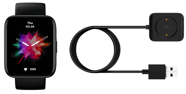 Just like the Beyond smartwatch, This new Beyond 2 watch also got a square design that looks sporty, stylish, and fits men and women. Measuring 45*37*10.5mm and weighing about 43g. There is one physical button on the right side of the case. It is responsible for the function of turning on the running. The reverse side of the device received a typical configuration – there are magnetic contacts for charging and a heart rate sensor.