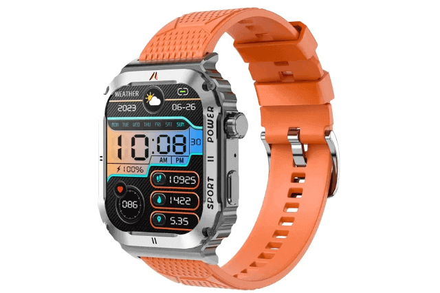 Pros: Stylish design, 2.1-inch large screen, Bluetooth calling, 159 sports modes, Multi kinds of health monitoring, +500 watch faces